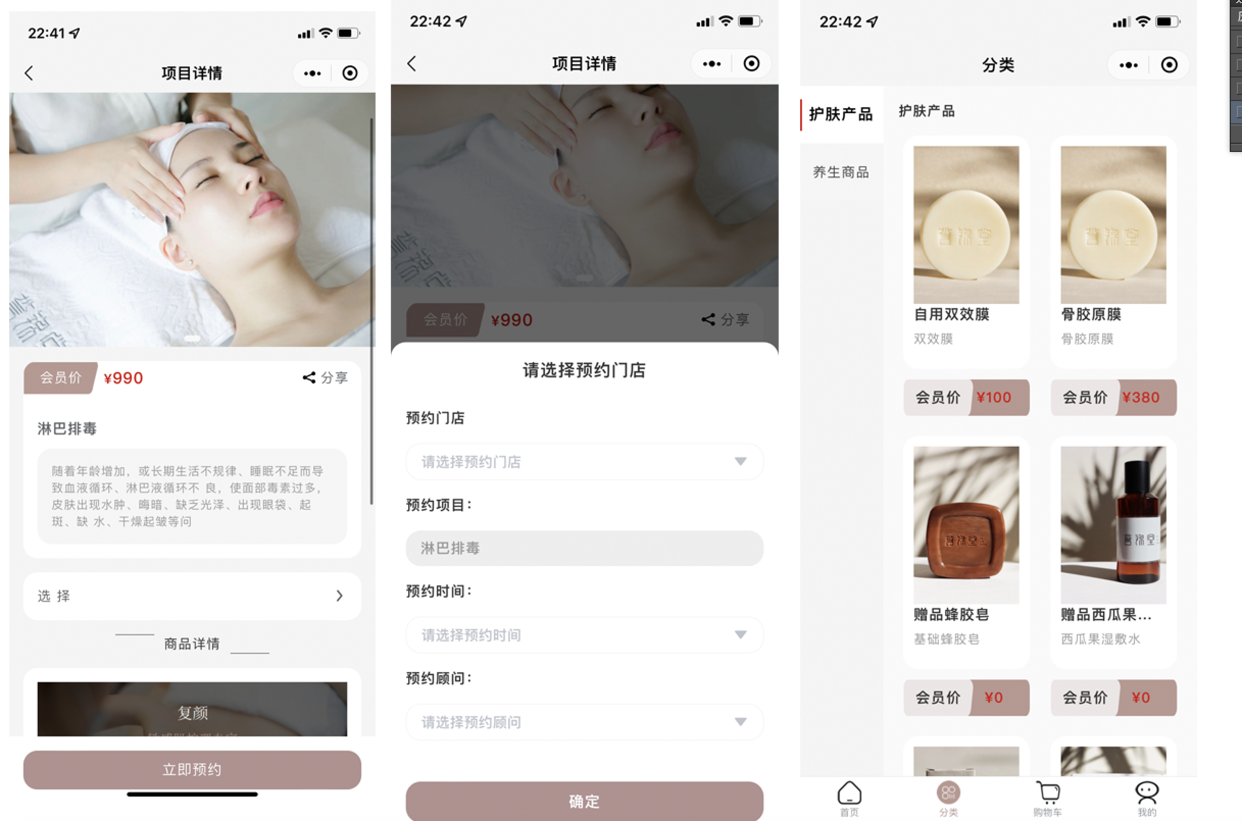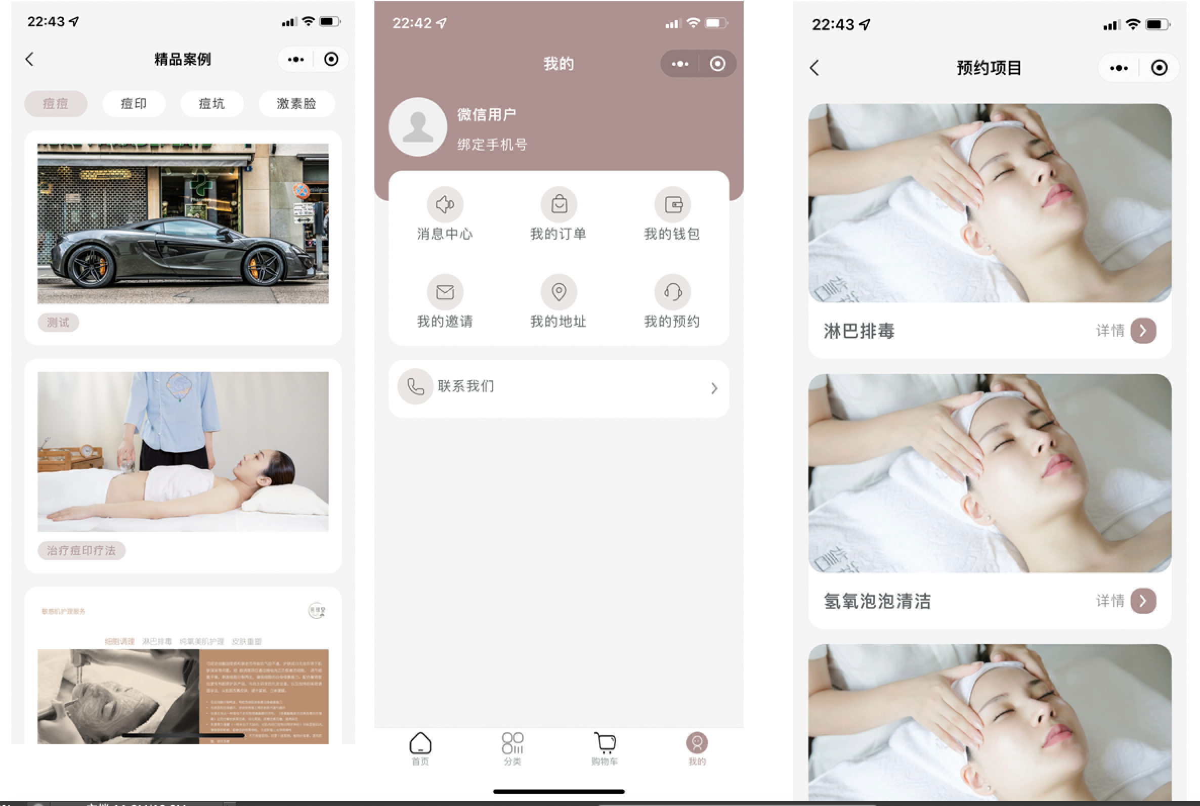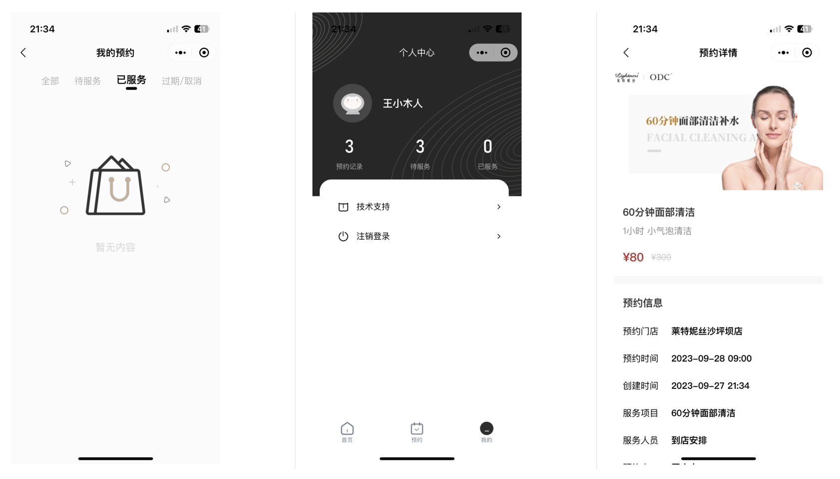 美容行业门店服务预约小程序,适用于线下个体户,有自己的品牌或者门店的商家,店主,做美容,美发,医美,按摩等服务性质行业的在线预约,管理,可实现客户在线查看,服务预约,到期提醒,商家在线管理服务项目,服务订单,处理服务,通知客户等,增强门店品牌效应,展示产品,提高服务产品营销传播途径,给客户带来信任感,降低销售阻力。