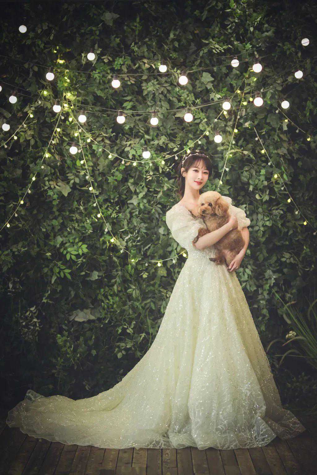 月遇从云,花遇和风,杨紫复古的一字肩泡泡袖浪漫婚纱裙加上珍珠发箍的造型也太唯美了,午后阳光下于绿茵丛中释放无限魅力。