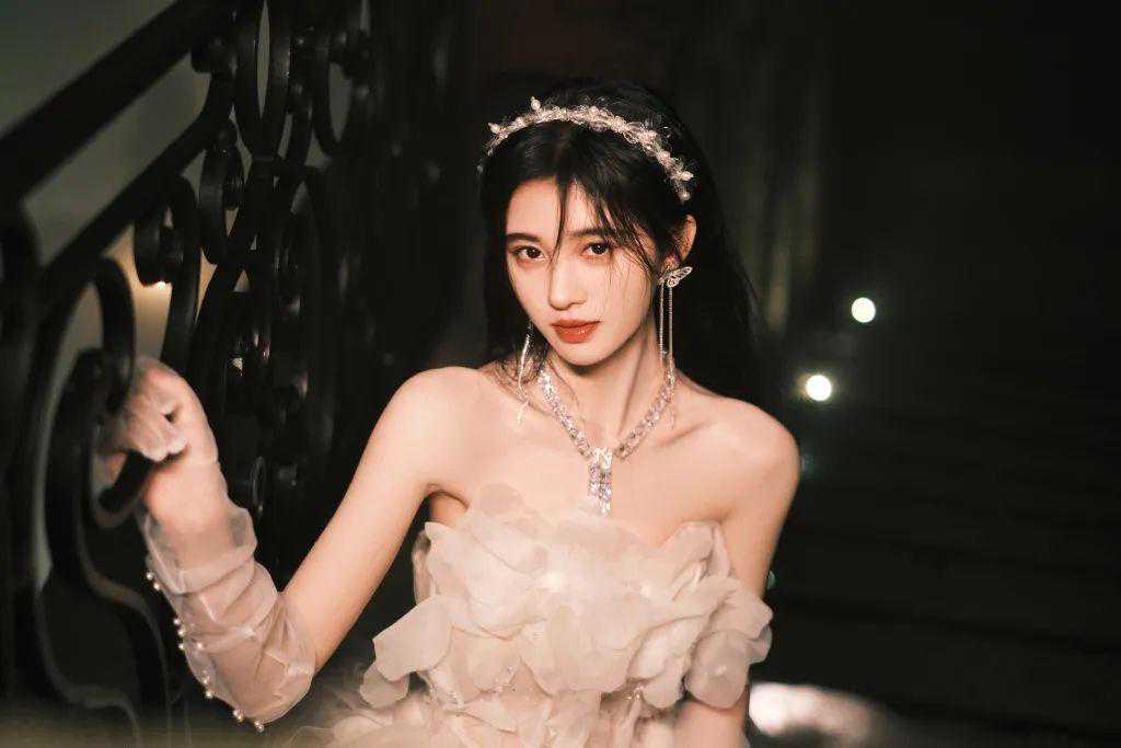 白色礼服裙是女人最柔软的战袍,纯洁温柔又不失温婉大气,抹胸的设计显出鞠婧祎修长的颈部、精致的锁骨、迷人的香肩,透着点点的性感。记得舞台下的目光清澈明亮,记得舞台上的人闪闪发光。