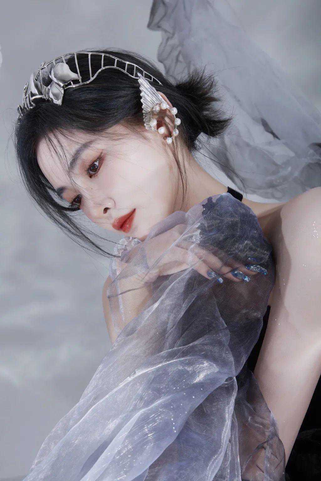 许佳琪的银色发箍曲面结合几何感强烈的轮廓,有着轻灵跃动的线条美感,高反光银色如水的光泽,传达出友好的未来主义气息和优雅之间的张力。