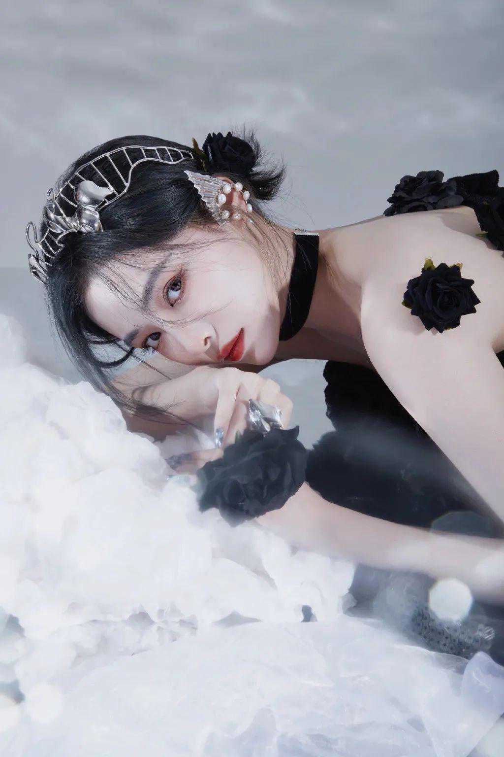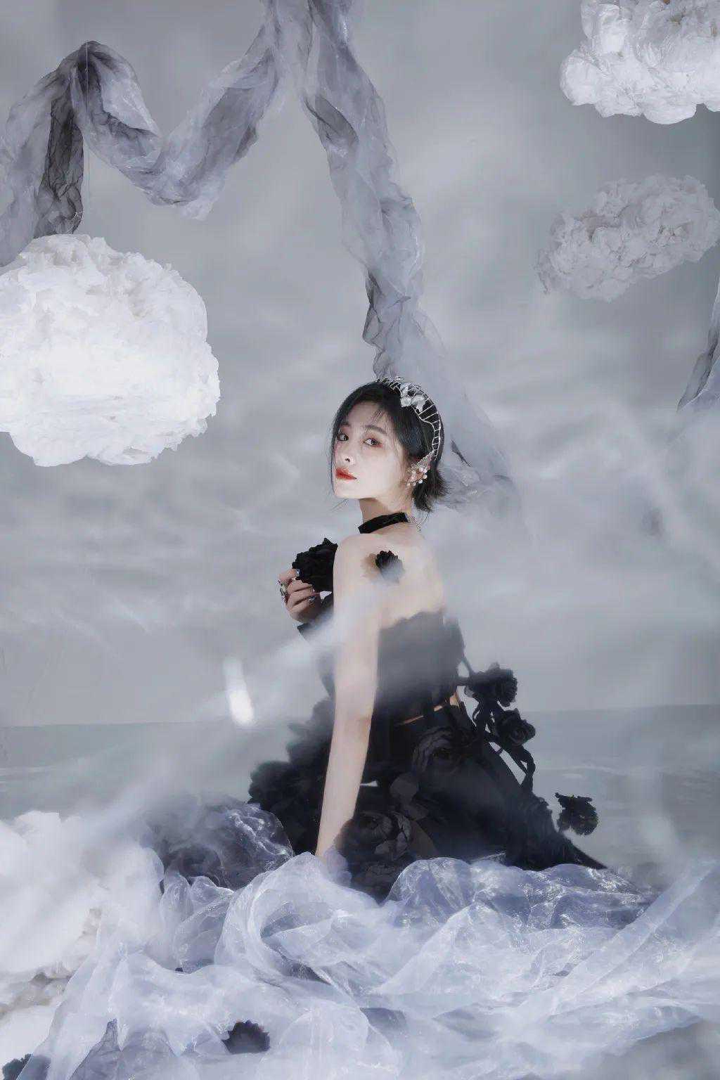 文咏珊身穿纯白色单肩抹胸鱼尾裙,搭配珍珠发箍,像纯洁灵动的美人鱼置身花海,仙气飘飘。