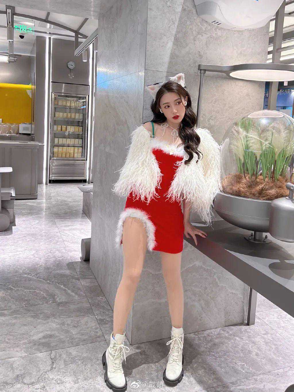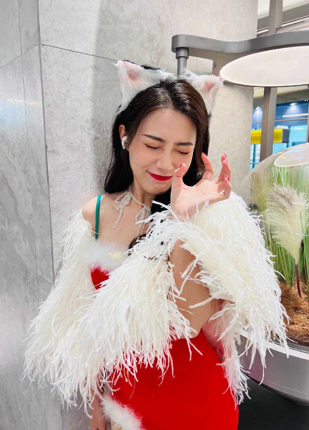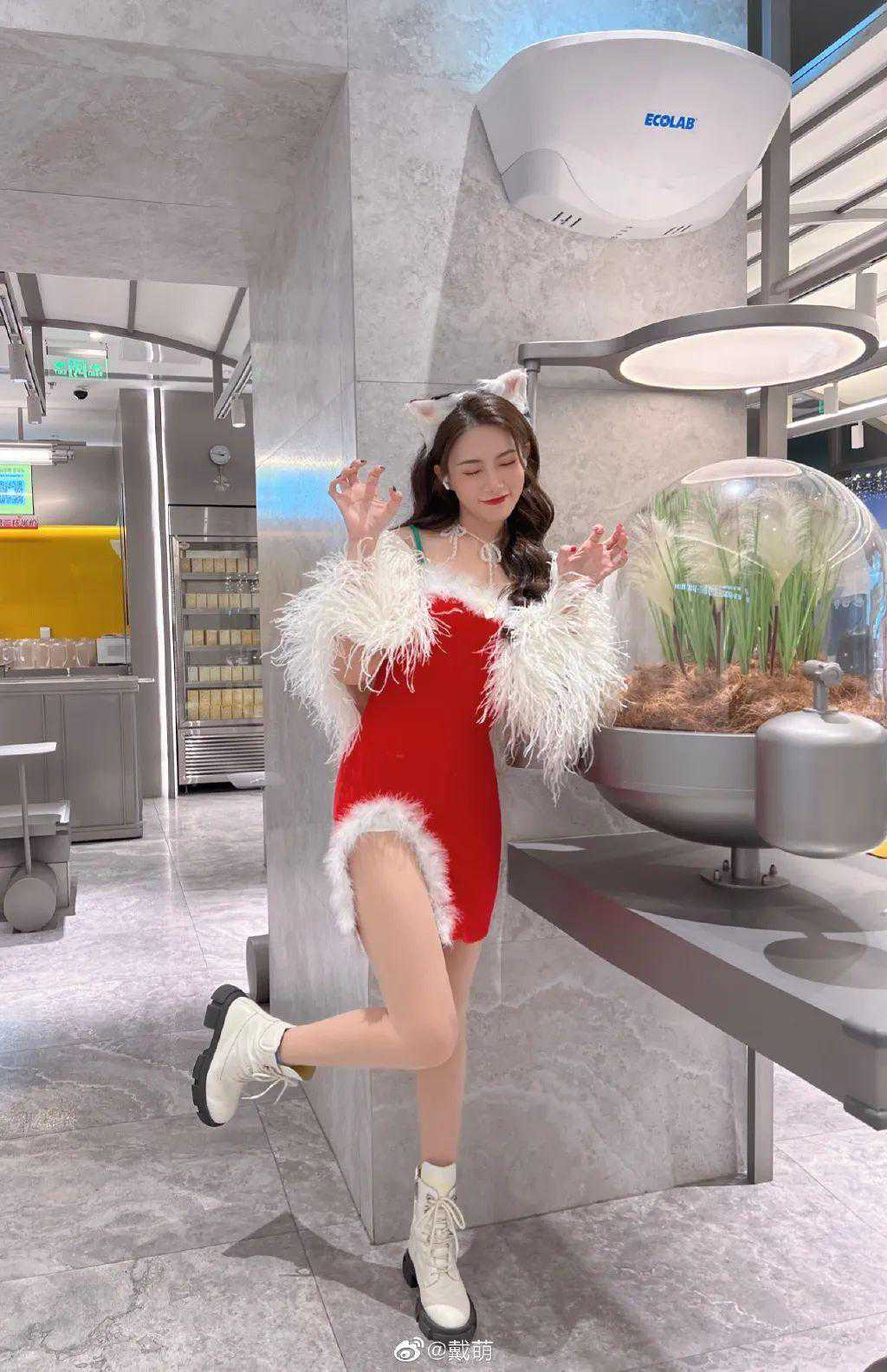 戴萌圣诞风连衣裙搭配猫耳发箍,是谁家的小猫咪走丢了?