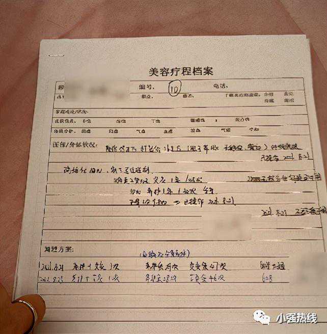 从张女士提供的“美容疗程档案”中可以看到,上面只有简单的个人信息登记,剩下内容都是手写的“调理方案”,没有落款盖章。