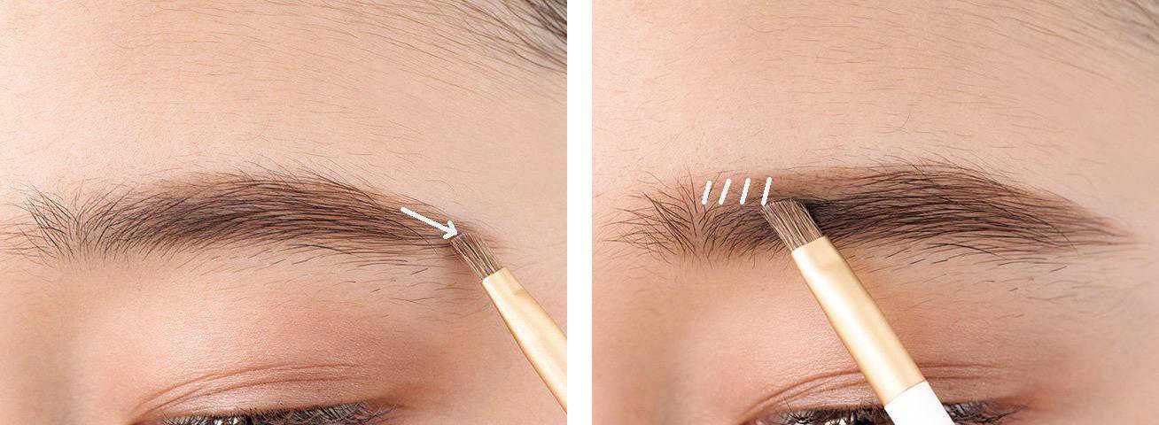 它的双头设计很实用。方形扁平的笔头易于上手(没什么手法的我也可以一笔上色),附带的螺旋形眉刷,可以梳理眉毛,这一步很重要,是能够让眉形更细致,眉色更自然的关键。