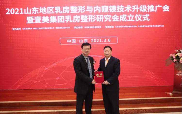 借此次内窥镜技术推广会,山东壹美集团成立了乳房整形研究会,聘请江华、孙美庆、胡振生三位教授担任壹美集团名誉院长,帮助内窥镜技术在集团推广应用。壹美集团作为山东医美行业领导品牌,以不断提高医学整形技术、推动行业发展为己任,同时希望能够为省内医疗同行搭建一个技术交流平台,让业内专家在此充分交流经验、分享成果。