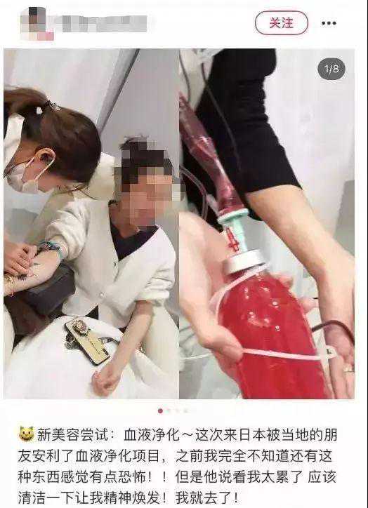 女人为了美貌真的会下“血本”,比如之前日本很火的“臭氧净血”,号称能将体内的血“净化”,从而起到提高免疫力、美容的效果这么离谱又昂贵的护肤方法我等当然不会去尝试,但是有一位网红替我们试了