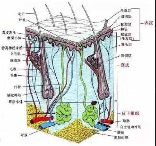 我们的肌肤是由表皮、真皮和皮下组织构成的,这种“灌肤”方式能接触到的仅仅是表皮层而已,表皮层又由角质层、透明层、颗粒层、棘层和基底层构成。