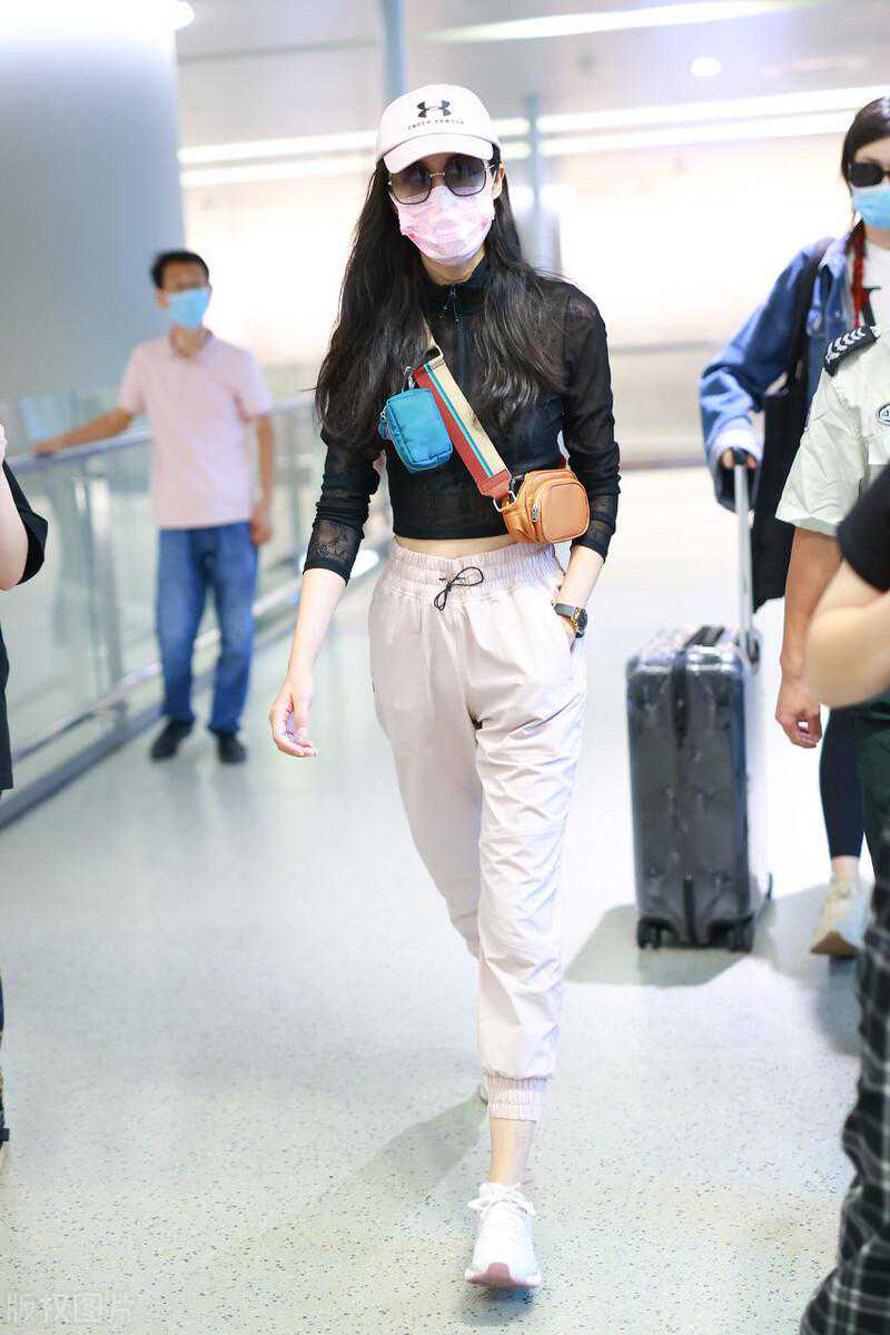 韩雪,黑色紧身衣+运动裤+小白鞋+子母包休闲潮流。