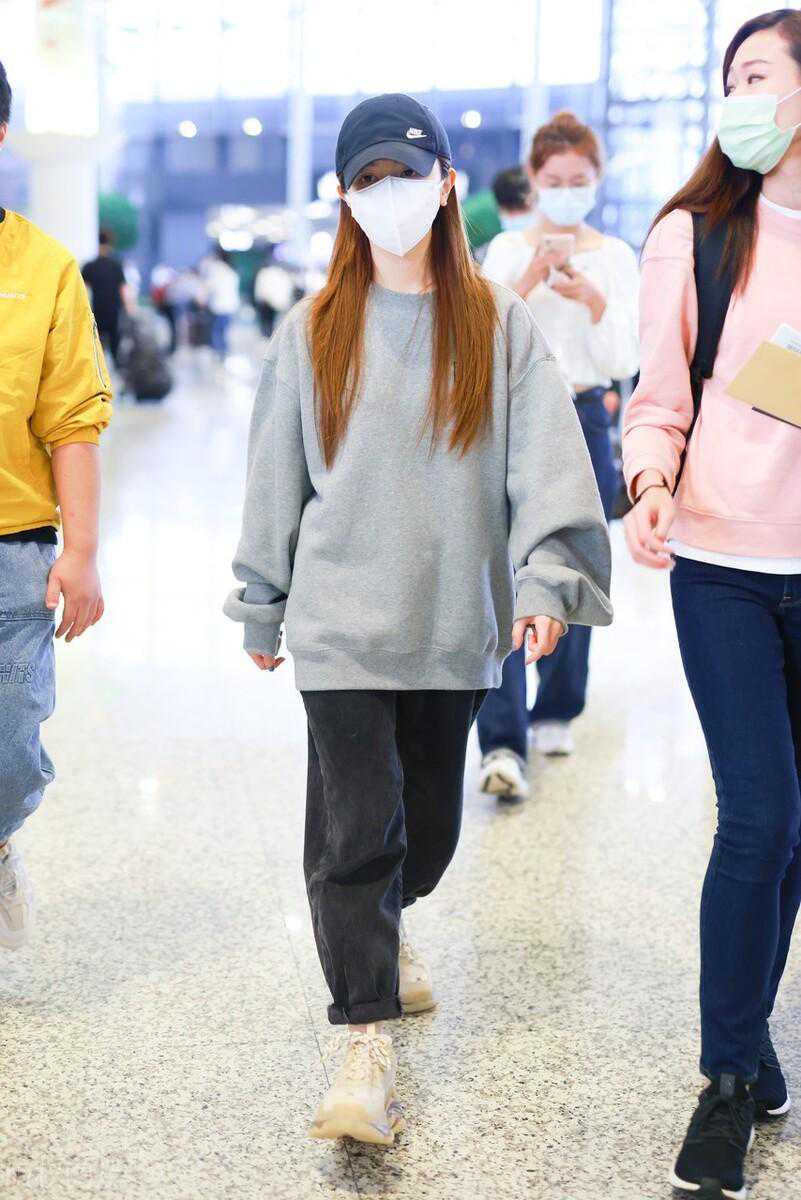 邓紫棋,灰色卫衣+牛仔裤+小白鞋+Nike棒球帽休闲舒适。