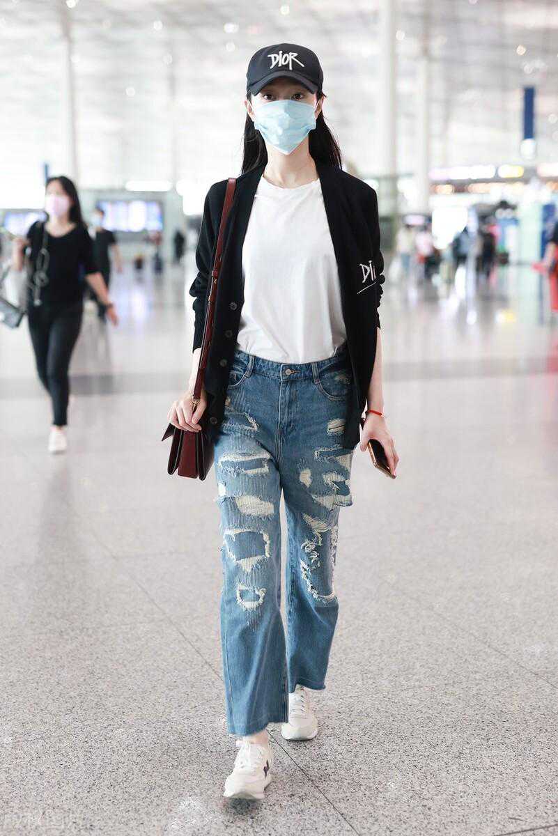 宋轶,黑色针织外套+白色T恤+破洞牛仔裤+小白鞋清爽干净