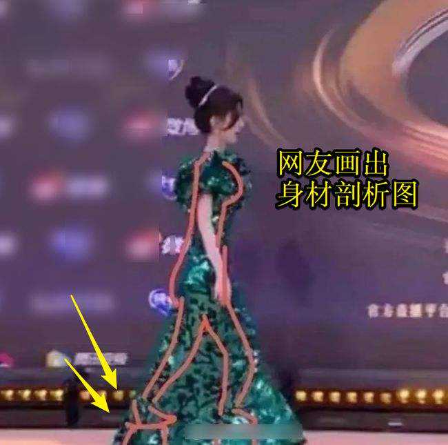 “假屁股”明显没在屁股上,下移后位置奇怪,在包臀裙的包围下显得有棱有角。这哪是什么蜜桃臀,分明就是造假的屁股,和颁奖典礼举办之前所拍下的照片简直天差地别!