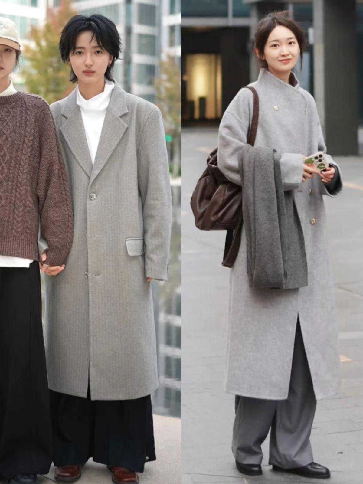 浅灰色大衣虽然没有驼色大衣那么常见且温柔,却独具一抹清冷格调,很适合用来打造高级感造型。