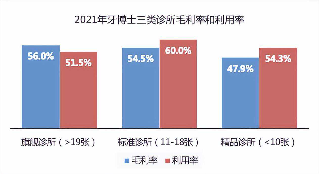 2.选对了以诊所为主的扩张模式。有研究表明,11-21张牙椅的规模是口腔医疗的“甜蜜点”,该规模下的盈利压力、服务精细度、口碑、扩张难易度、毛利率都是最合适的。4-6张牙椅的小诊所是医生创业的首选,主要靠一两名熟练医生,天花板很低;而40张牙椅以上的口腔医院,投资大,盈利慢,初期运营压力大,不易扩张。