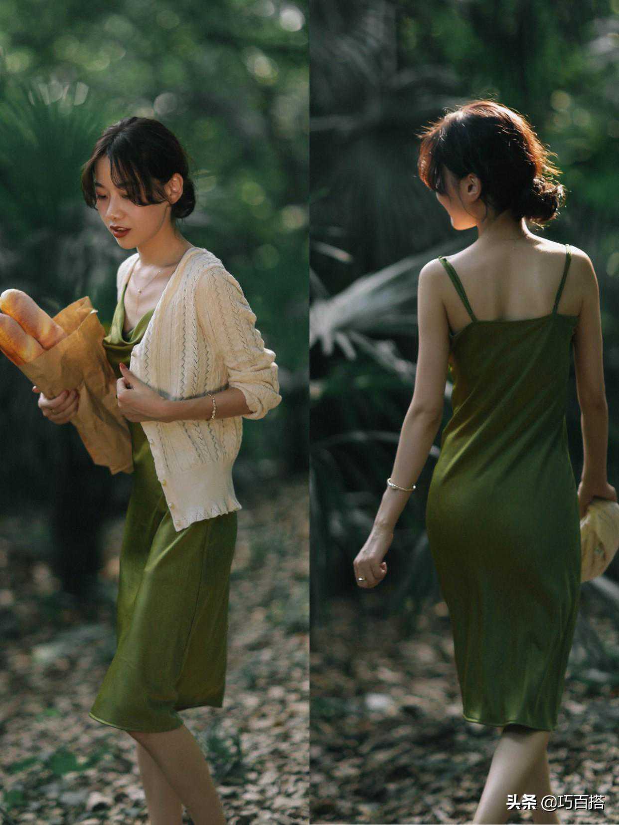 露出部分连衣裙的穿法,行走间灵动好看,优雅感油然而生。