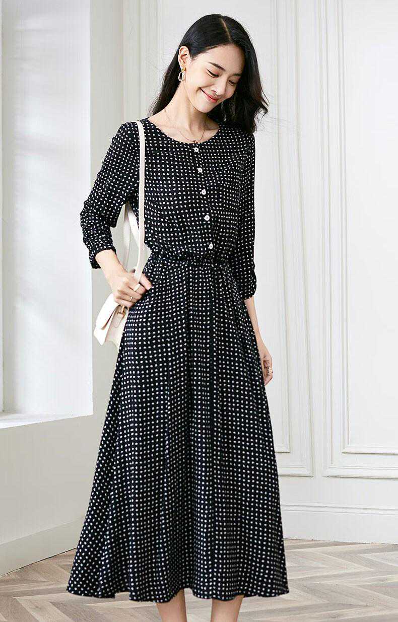 一条好看的气质印花连衣裙,秋季减龄穿搭必备,展现自然清新魅力