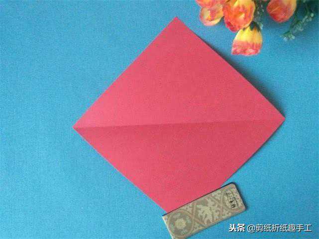 今天分享一种十六折的窗花剪法,这种折法是第一次接触,一会上图的时候我会讲的比较详细,大家把它学会,下一次再用起来就容易多了。1、取一张正方形彩纸,沿三角形对角线对折一次。2、在第一次对折的基础上再沿对角线对折第二次。两次对折的情形,见下图。3、取三角形的一角沿中线向上折叠,和另一个顶点对齐。4、另一...