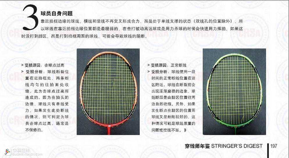 又到了寒冷的冬季,羽毛球线的寿命较夏天有了较明显的缩短,部分球友甚至出现了几拍就“秒断”情况。作为一名穿线师,觉得有必要整理和分析一下常见的断线原因,并给出一些解决的办法。本文抛砖引玉,欢迎批评指正。一、常见的断线情形与断线原因分析1、断竖线羽毛球拍上的线是由羽毛球线横竖编织而成,竖线的断裂更为常见...