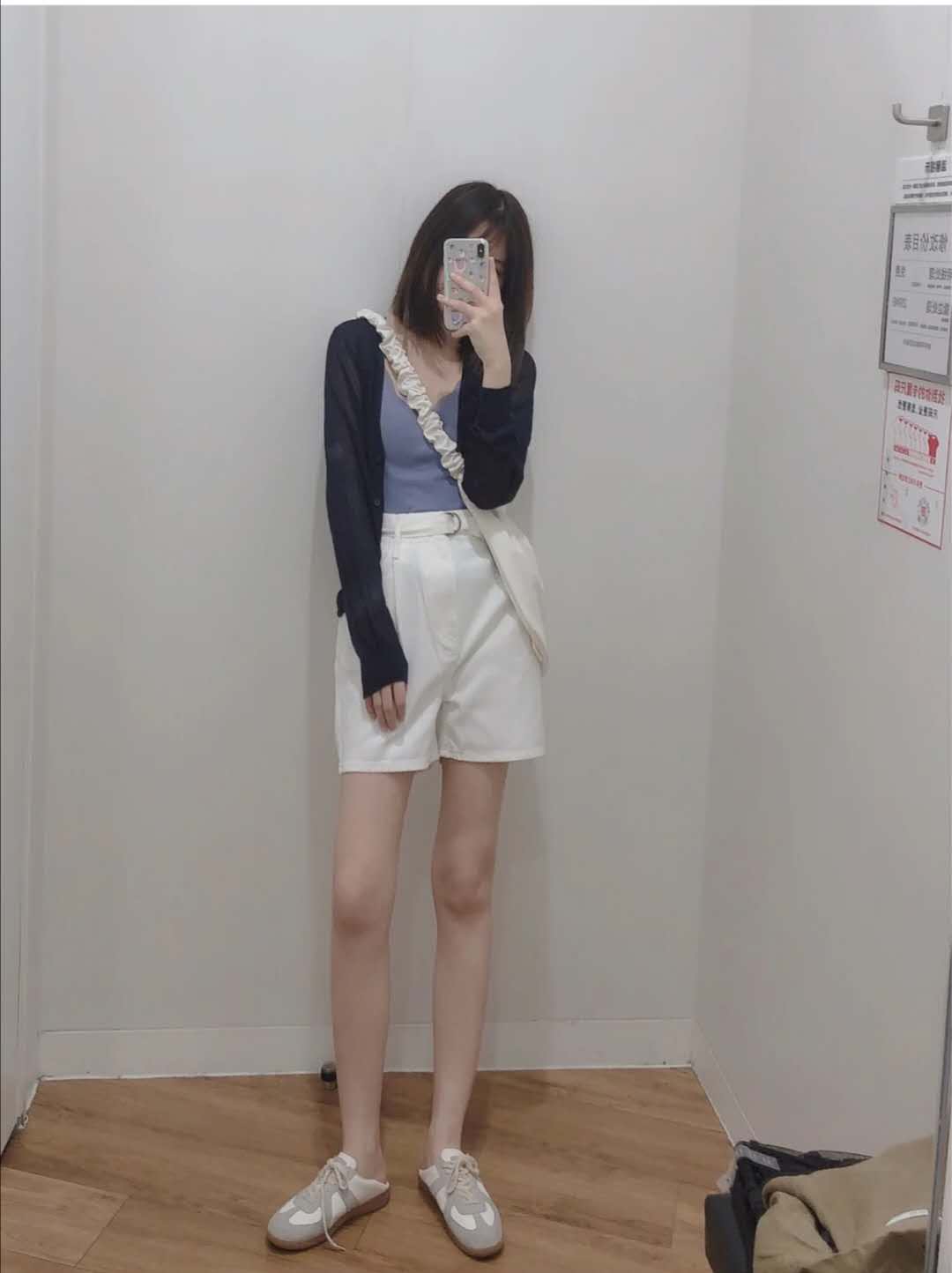 白色短裤搭配什么颜色上衣?