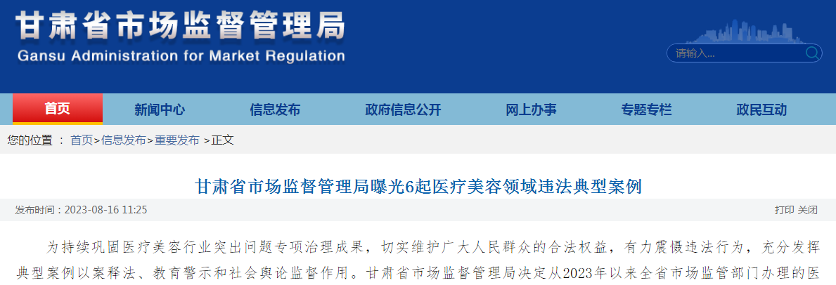 甘肃省市场监督管理局曝光6起医疗美容领域违法典型案例